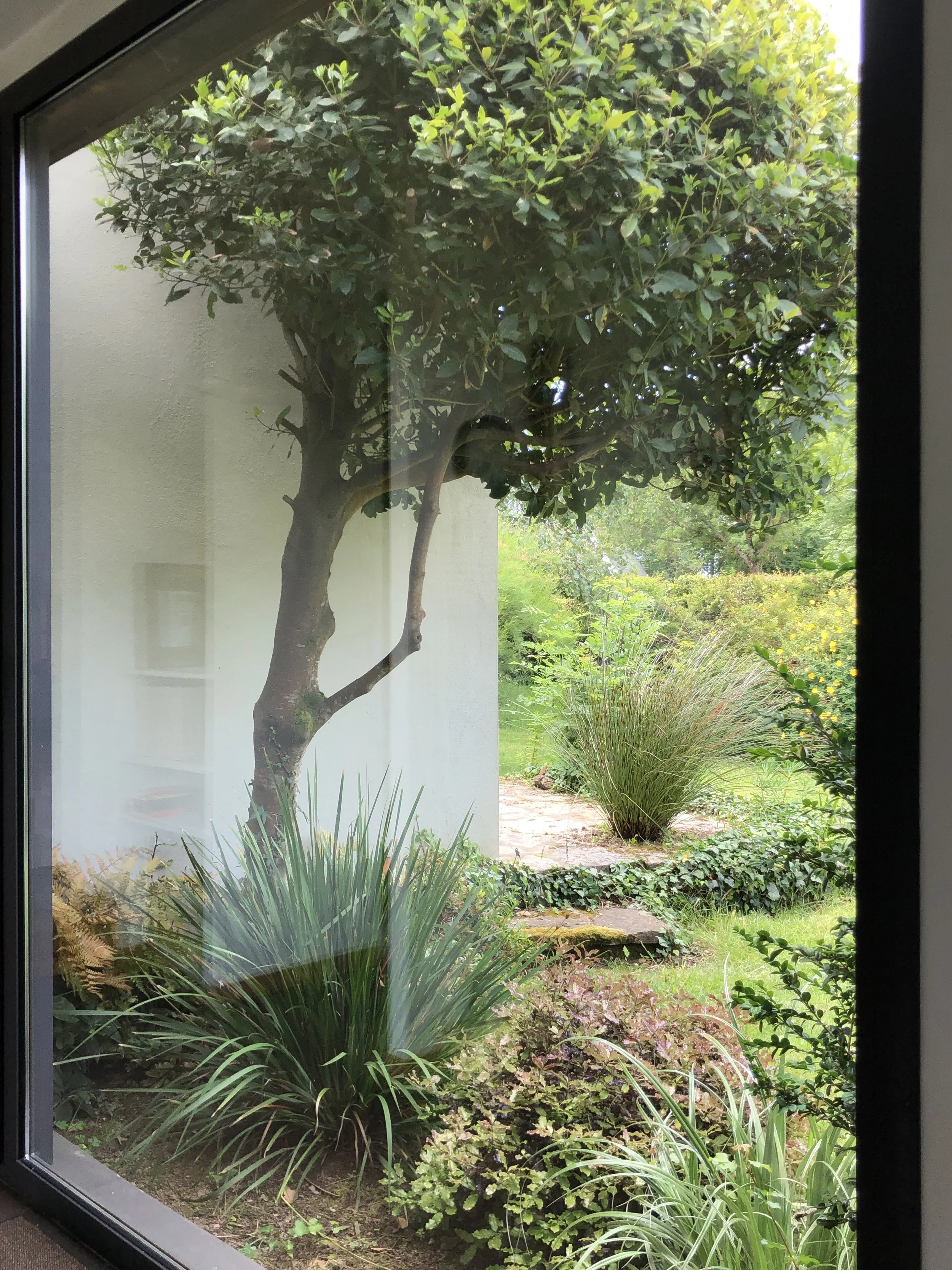 Quelques années après l’agrandissement de cette maison, un Cupressus macrocarpa est tombé, laissant derrière lui une page blanche. Cela a permis de réinventer le jardin en poursuivant le travail de l’architecte sur le lien entre l'intérieur et l'extérieur.